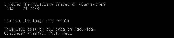 - Hit the Enter key again to accept the default and install on sda