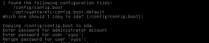 - Enter and confirm the password Flackbox1 for the vyos admin user