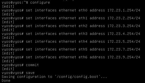 - Configure the interface IP addresses in VyOS.