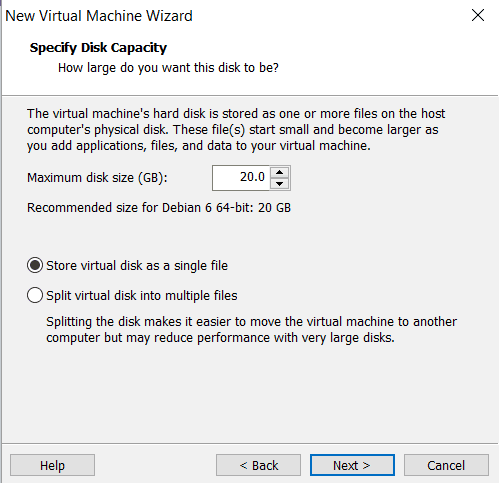 - Select the option to Store Virtual Disk as a single file and click Next.
